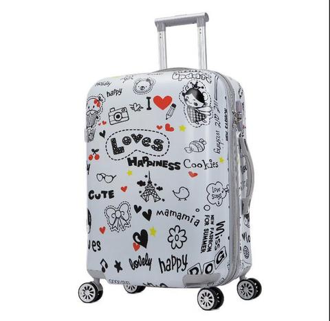 폴리 카보네이트 pc 인쇄 디자인 다채로운 아이 귀여운 여행 하드 쉘 트롤리 수하물